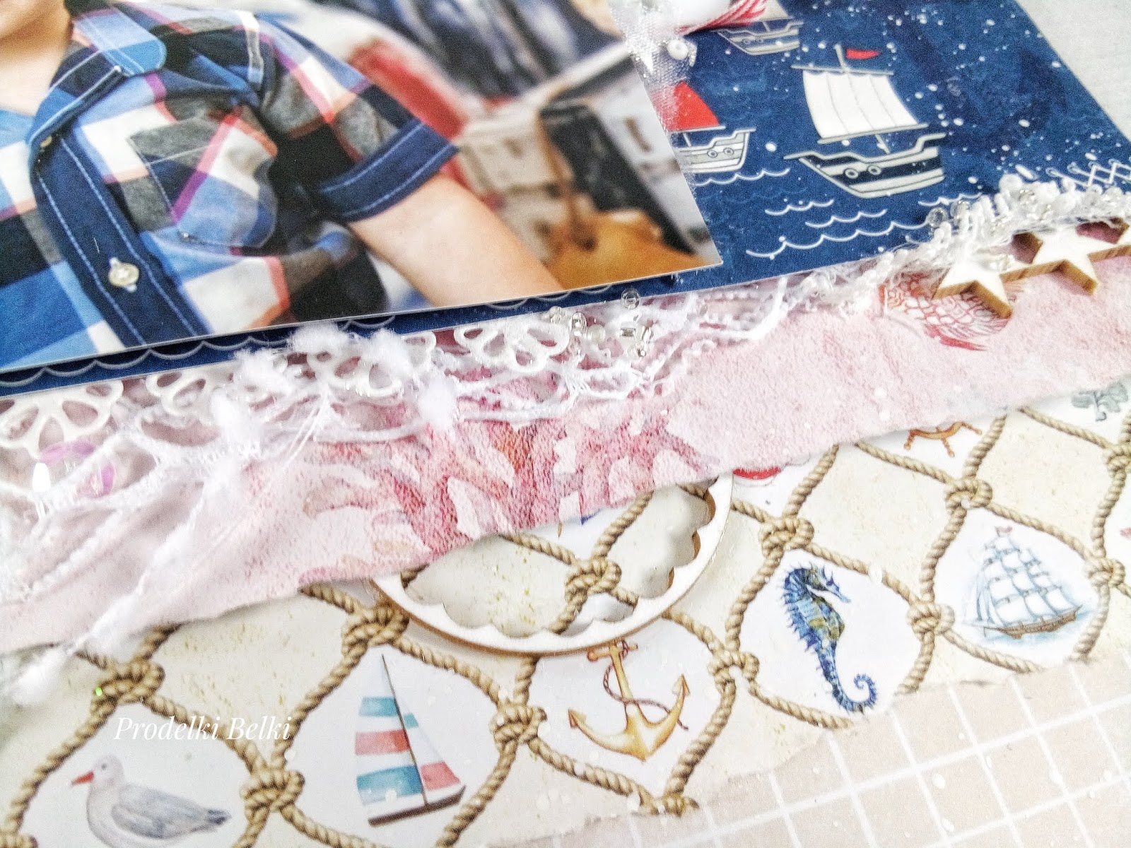 Под фотографию отлично подошла бумага из коллекции "Sea adventure" от Bee Shabby, листочек из "Vanilla Dreams" от Summer Studio и лист от Scrapberrys.